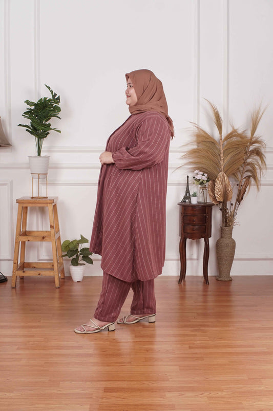 Yomi Official - Tunic Suit Yura | Setelan Tunik Slit Broken White Stripe