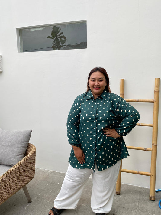 Yomi Official - Kemeja Vellena | Polkadot Hijau