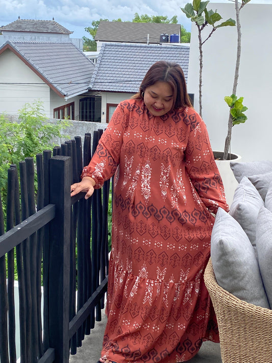 Yomi Official - Tunic Suit Yura | Setelan Tunik Slit Teracotta Dots