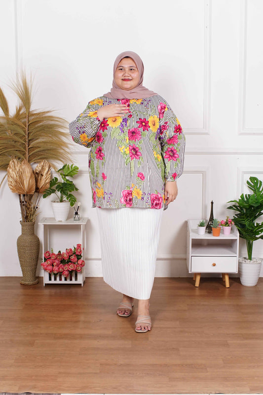 Yomi Official | Kemeja Selena | Stripe Bloom Mix