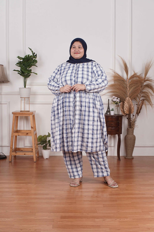 Yomi Official - Tunic Suit Azura | Setelan Tunik Kotak Biru Hitam