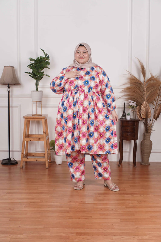 Yomi Official - Tunic Suit Emalia | Setelan Tunik Serut Flower Colorful
