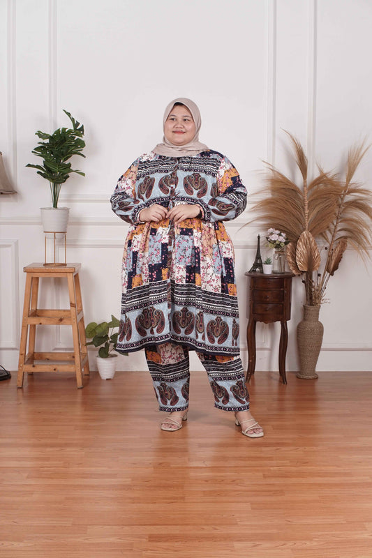 Yomi Official - Tunic Suit Emalia | Setelan Tunik Serut Etnik Blue Abs
