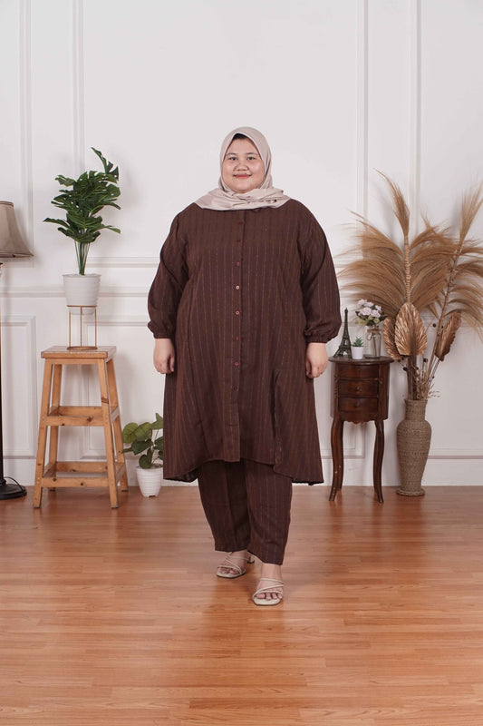 Yomi Official - Tunic Suit Yura | Setelan Tunik Slit Choco Stripe