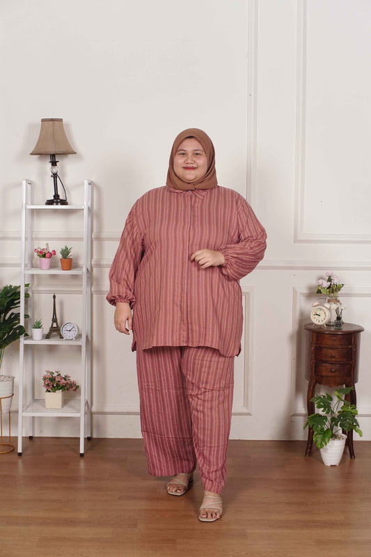 Yomi Official | Oneset Tania | Stripe Chocopink