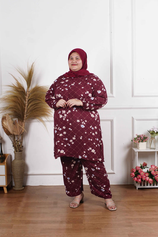 Yomi Official | Oneset Tunik Aleaa | Red Wine Bloom