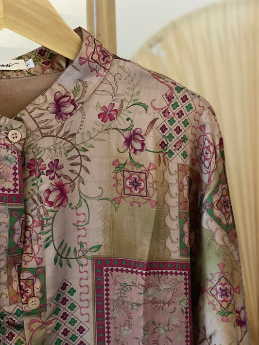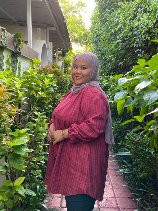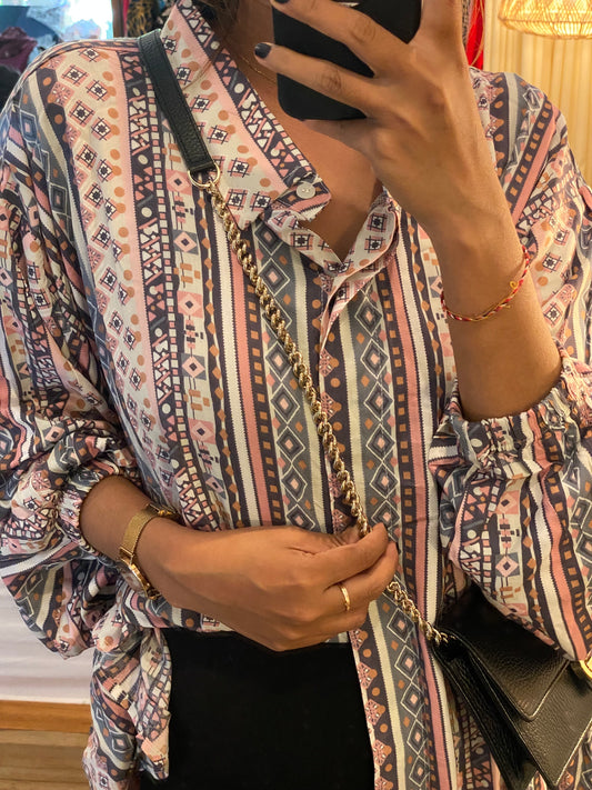 Kemeja Jumbo Etnik Pink Abu Big Size