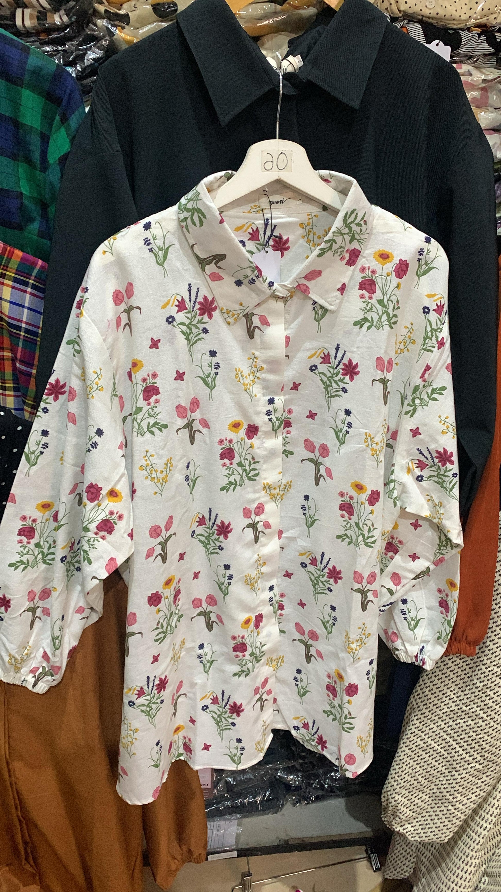 Kemeja Linen Bunga Broken White