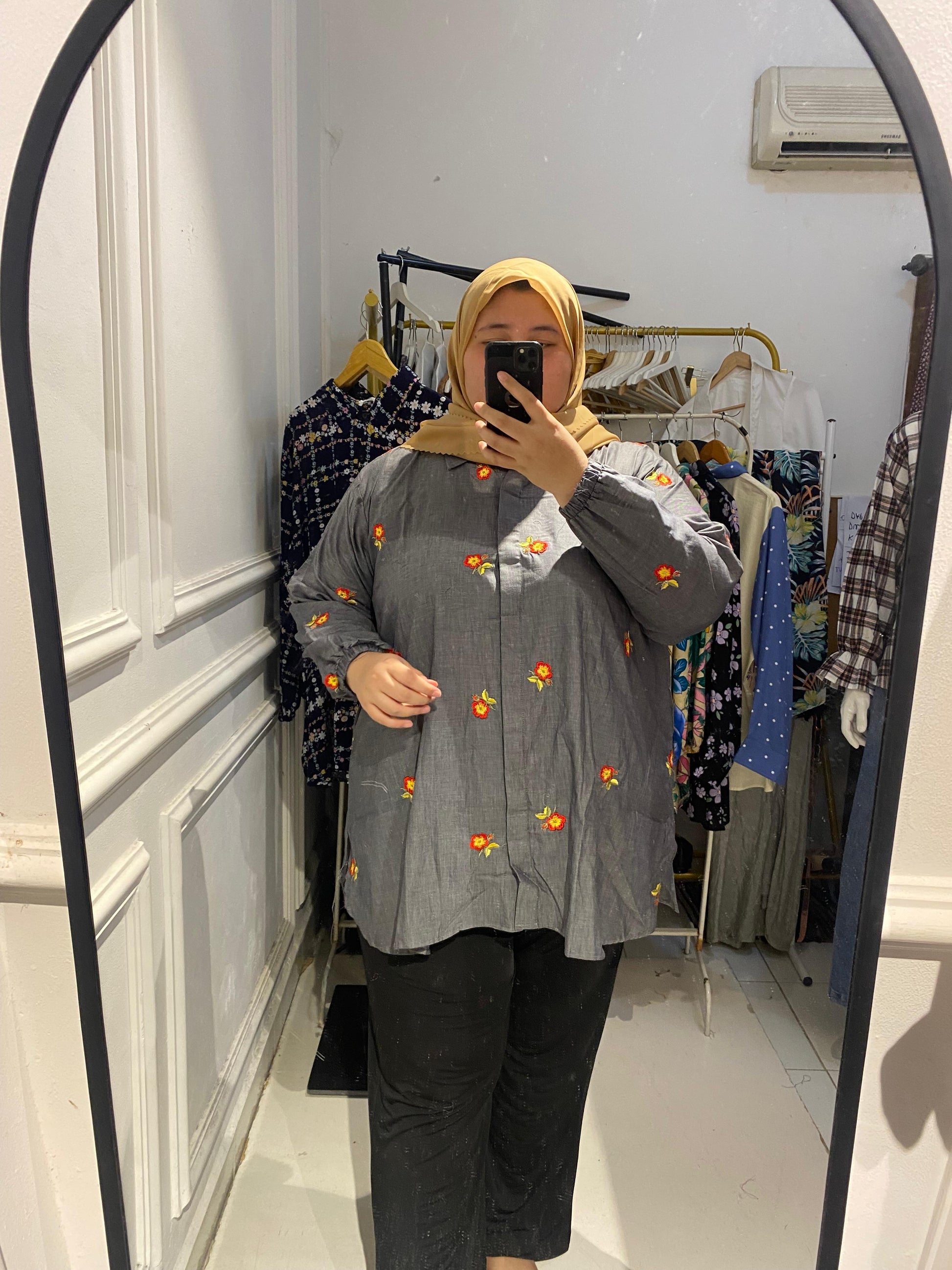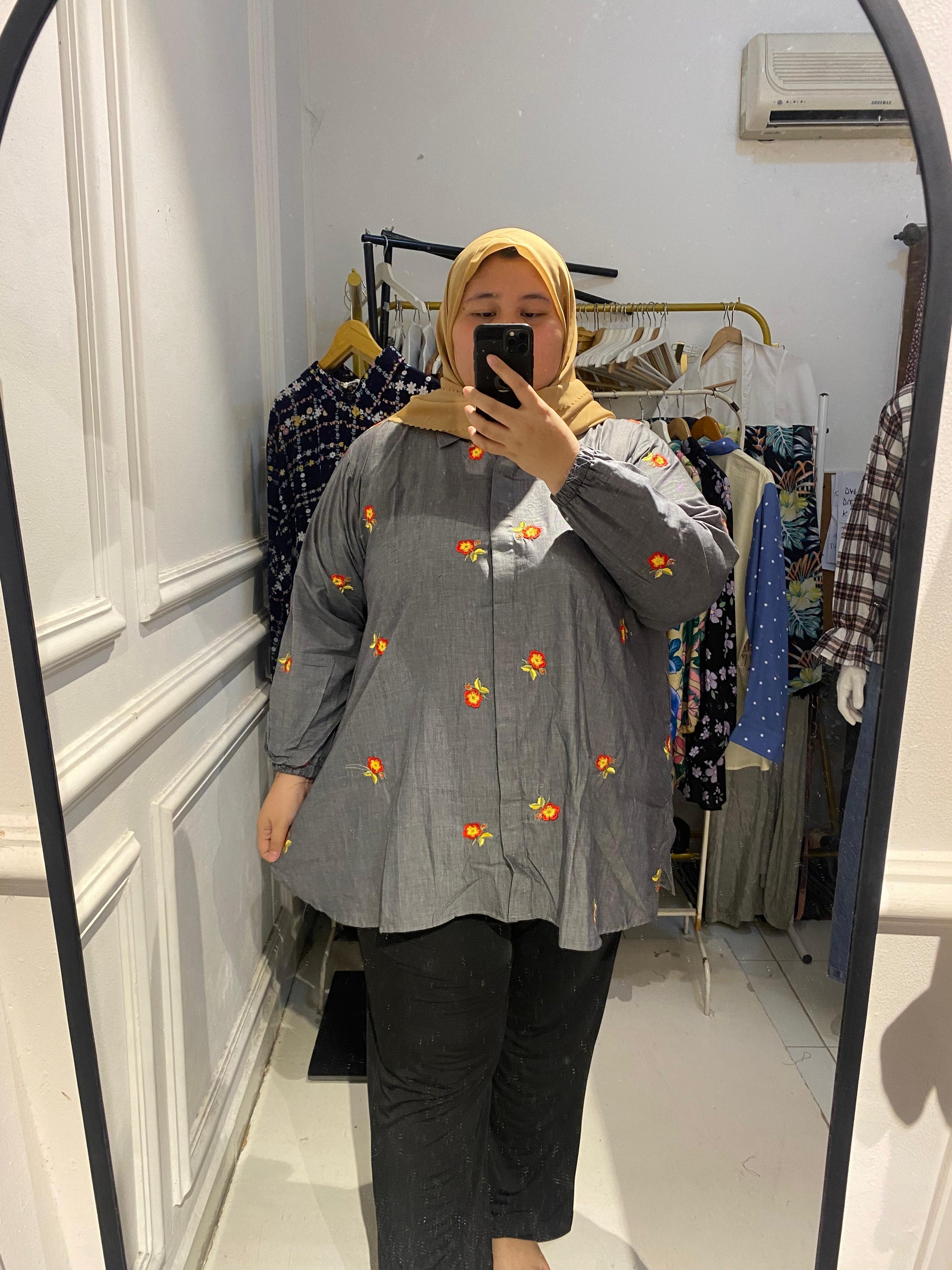 Yomi Official - Kemeja Vellena | Katun Bordir Abu