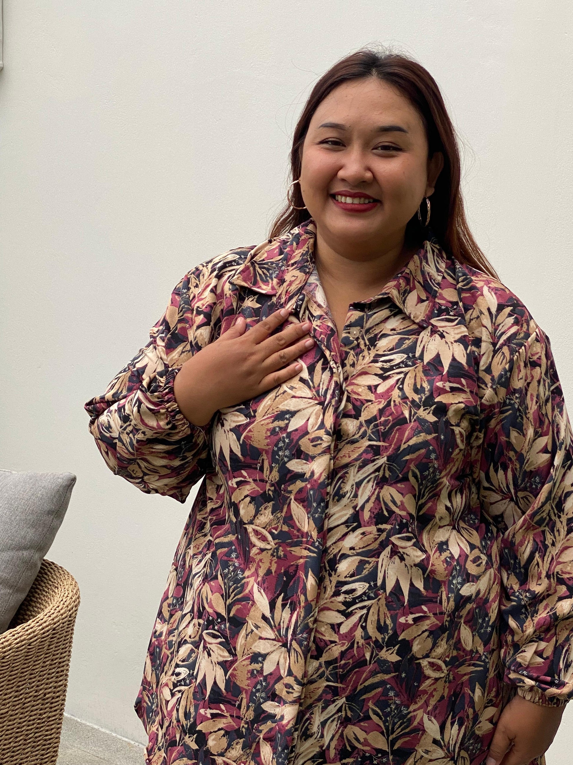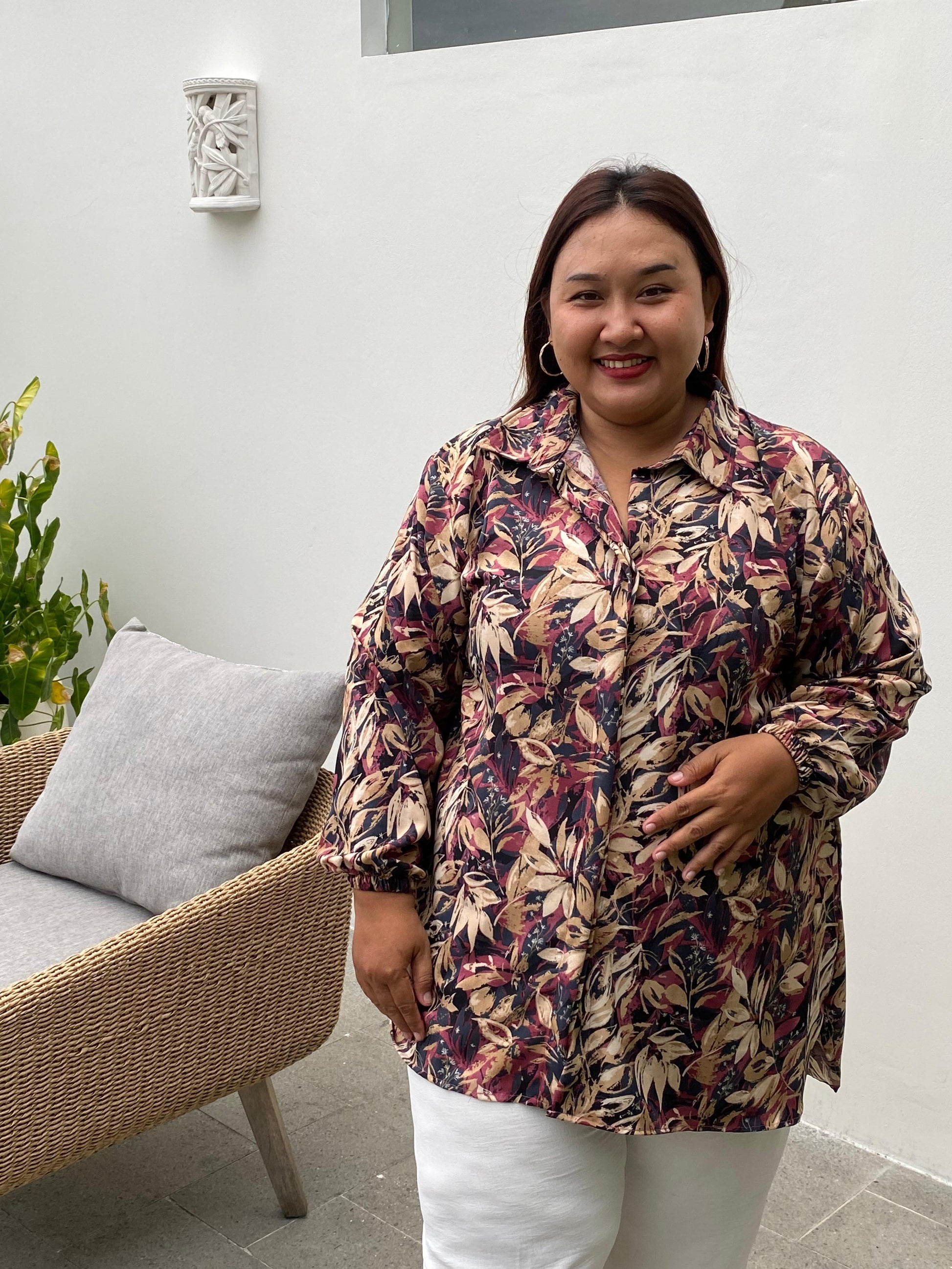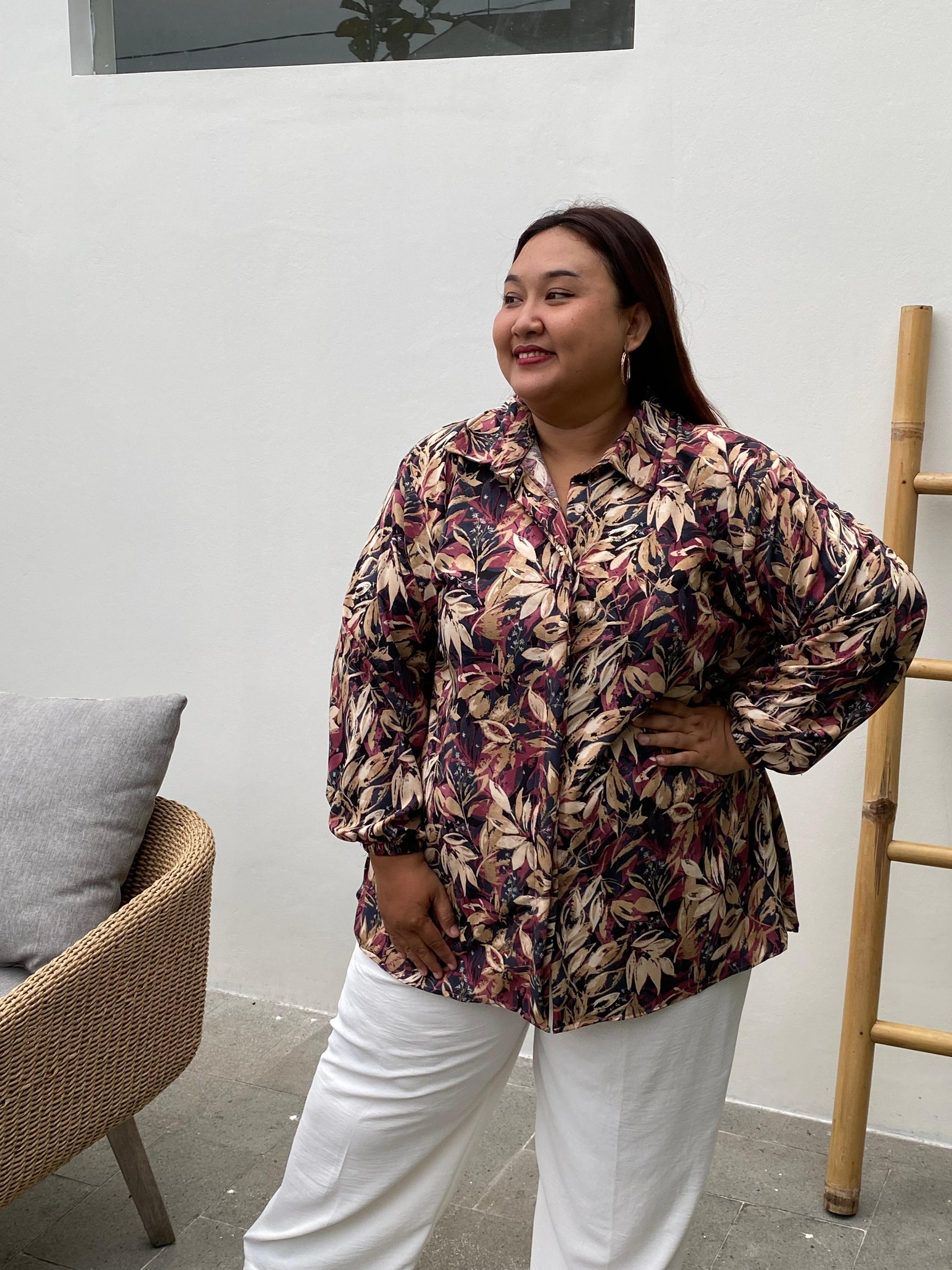Dengan lingkar dada besar 130–140 cm, potongannya dibuat oversize dan loose fit, memberi ruang gerak yang bebas dan tampilan modern yang sedang tren. Model kemeja ini sangat versatile — bisa dipakai sebagai outer, blouse, atau kemeja formal sesuai kebutuhanmu.