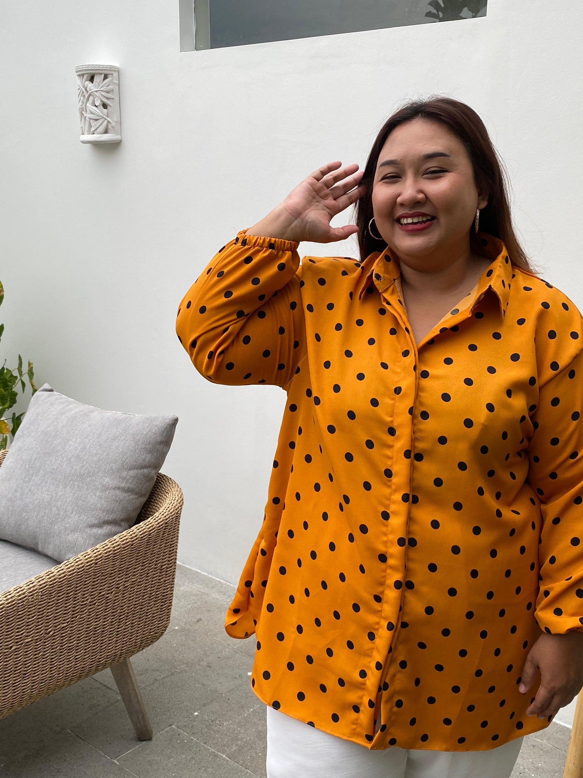 Yomi Official - Kemeja Vellena | Polkadot Kuning