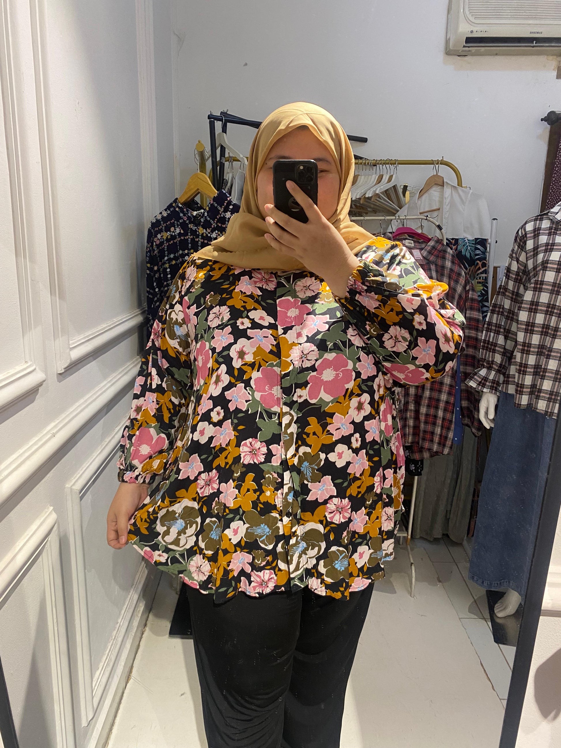 Yomi Official - Kemeja Rayon | Bunga Hitam